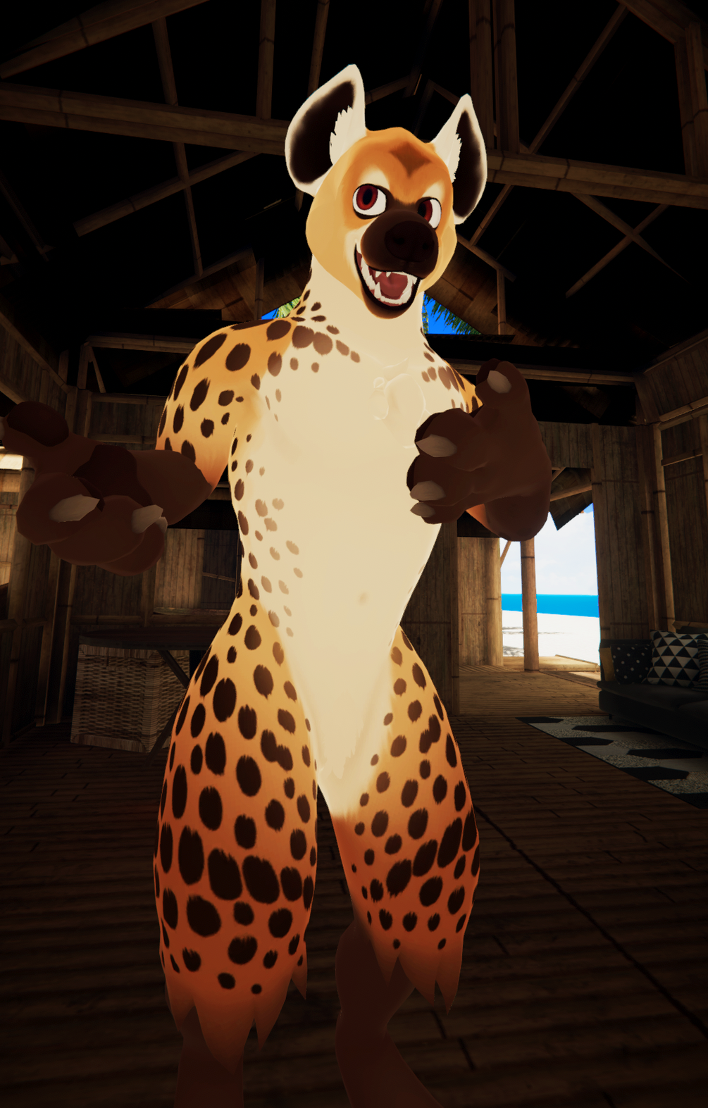 3 Premade Hyena avatars for VR Chat, PSDs for the textures, and a Blender file for the model