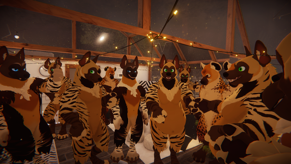 A pack of Hyenas arrive! Built and ready for use in VR Chat!! Includes three species of hyena with features you can mix and match and each with a multiple body type options that can be adjusted, mixed, and matched at ease using sliders built into the VR Chat quick menu!